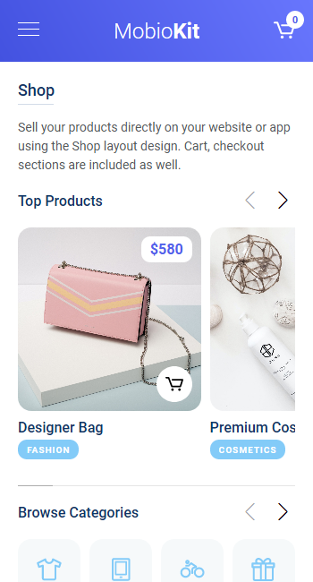 3. shop.html - contains the shop layout for a demo mobile e-commerce app