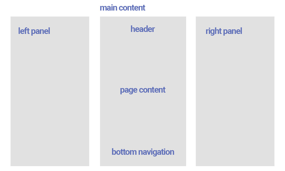 All the secondary pages have a custom HTML structure strating with the DIV <div class="page__content page__content--with-header page__content--with-bottom-nav">. A secondary page can have or not a header, or can have or not a bottom navigation are. Use the classes "page__content--with-header page__content--with-bottom-nav" to modify the content height depending on if it has a header and bottom navigation or not.