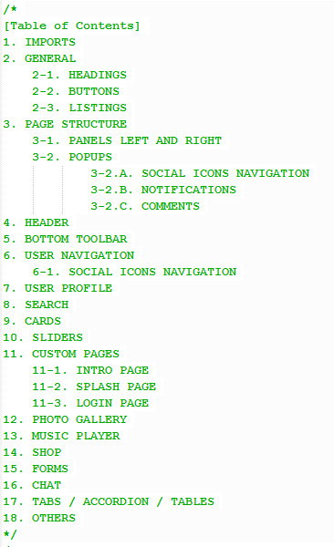 At the beginning of each style.css there is a Table of Content, so you know exactly from where each section can be customized